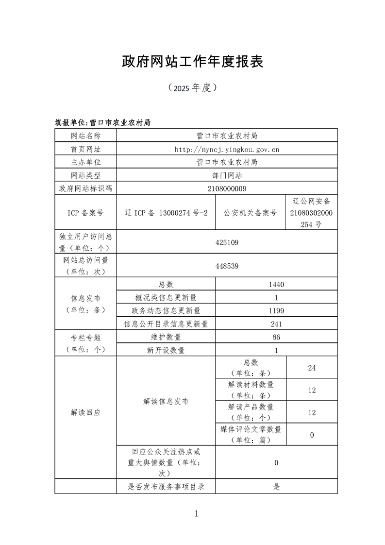 营口市农业农村局2025年网站工作年度报表